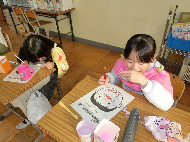 歯の染め出しで、みがけていない部分に気付くとともに、正しく歯をみがくことの大切さを知ることができました。